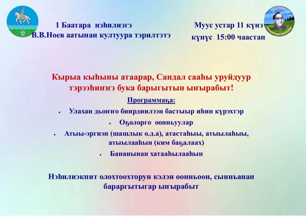 1️⃣Баатара нэһилиэгэ В.В.Ноев аатынан култуура тэрилтэтэ